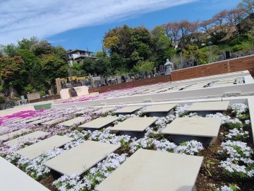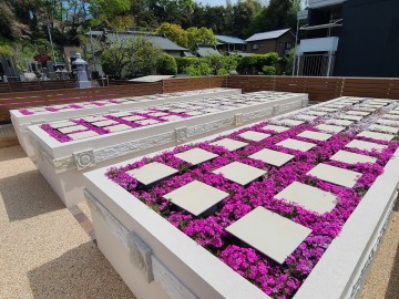 カロートの表面を化粧砂利ではなく、芝桜を施した関泉寺様のガーデン墓地。